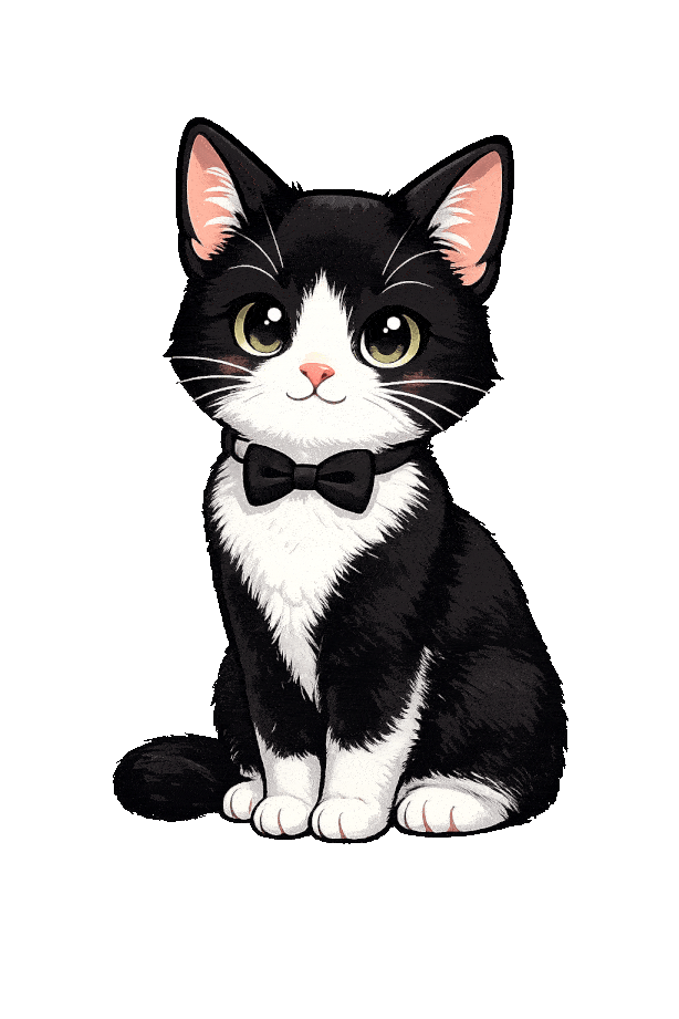 Cute tuxedo cat names that sound good out loud. Pick a style (Cute, Silly, Fancy, Short), generate a list, click to copy. From sharp and dapper to silly and dramatic. Perfect names for your black and white cat!